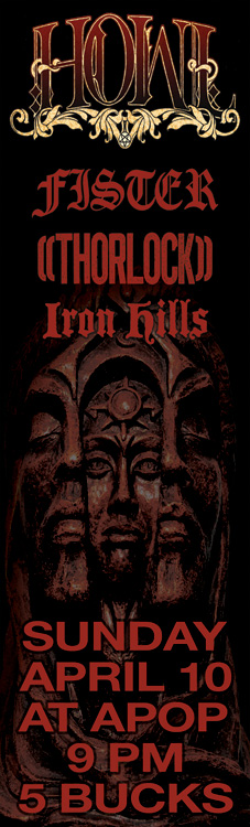Howl, Fister, Thorlock, and Iron Hills at Apop Records April 10th